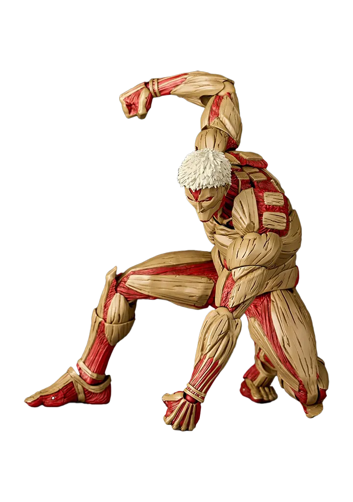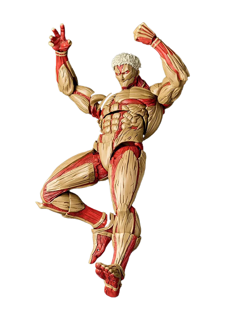 A sturdy giant dressed in armor! From the blockbuster TV anime, Attack on Titan, third titan appears in Amazing Yamaguchi! During the fall of Wall Maria, which was the beginning of the story, he was the Armored Titan who broke through the inner gate of Shiganshina Ward and brought despair to the people inside the walls! It is called because of the appearance of the whole body wrapped in ultra-hard skin that cannot be damaged by the blades of three-dimensional mobile devices and cannon shells. Even in Amazing Yamaguchi, the metallic texture of the high-quality skin and the muscle fibers of the whole body peeking out through the gaps are expressed in dense detail. In addition, the sturdy and strong proportions such as the thick torso and round thighs are also three-dimensionalized while keeping the image in the play as it is. Of course, the movable gimmick that Katsuhisa Yamaguchi, the executive producer of the model, has devised is also a highlight. Movement of both shoulders back and forth by dividing with the shoulder blades in mind. A torso that can be bent down deeply and slouched wide. The hip joint, which has a wide range of motion but does not have gaps, and the shin joint, which expresses “bending” like in anime, make the most of the simple body with unique movements! In addition to the default face with a closed mouth, a face part comes with an open mouth face as a replacement part. It is an eerily exhaled expression that can be used in conjunction with the pose to express the “sigh” before the attack. Replacement wrist parts are also modeled with a gesture that is conscious of strength. In addition to the default fist, it comes with an “open hand” with wide spread fingers, a “grabbing hand” that clenches, and a “half-open hand” that prepares for melee battles.