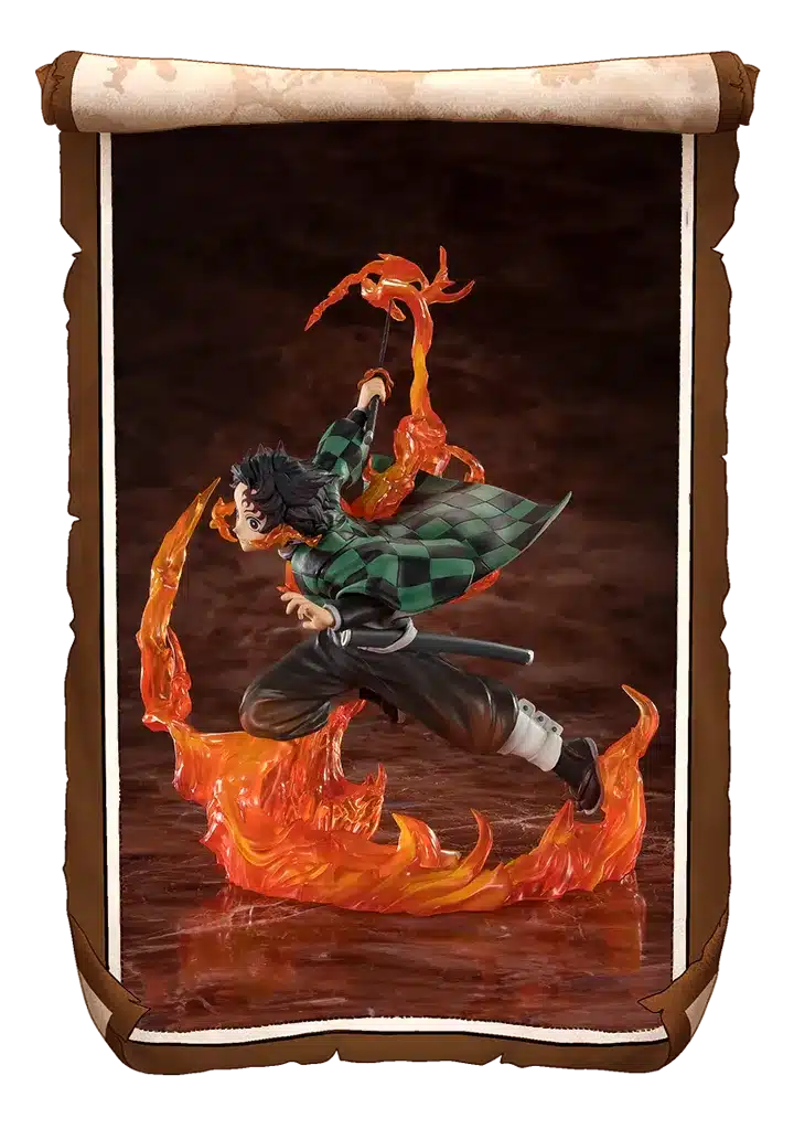 Tanjiro Kamado from Demon Slayer joins FiguartsZERO! This Demon Slayer: Kimetsu No Yaiba Tanjiro Kamado Kyojuro Rengoku’s Sword Guard Version FiguartsZERO Statue measures approximately 7 3/4-inches tall. It features Tanjiro after his birthmark has appeared, reminiscent of the final battle. His sword is updated with the flame sword guard from Rengoku’s Nichirin sword. The paint has also been renewed to give it a fresh impression! Don’t miss this riveting scene for your display!