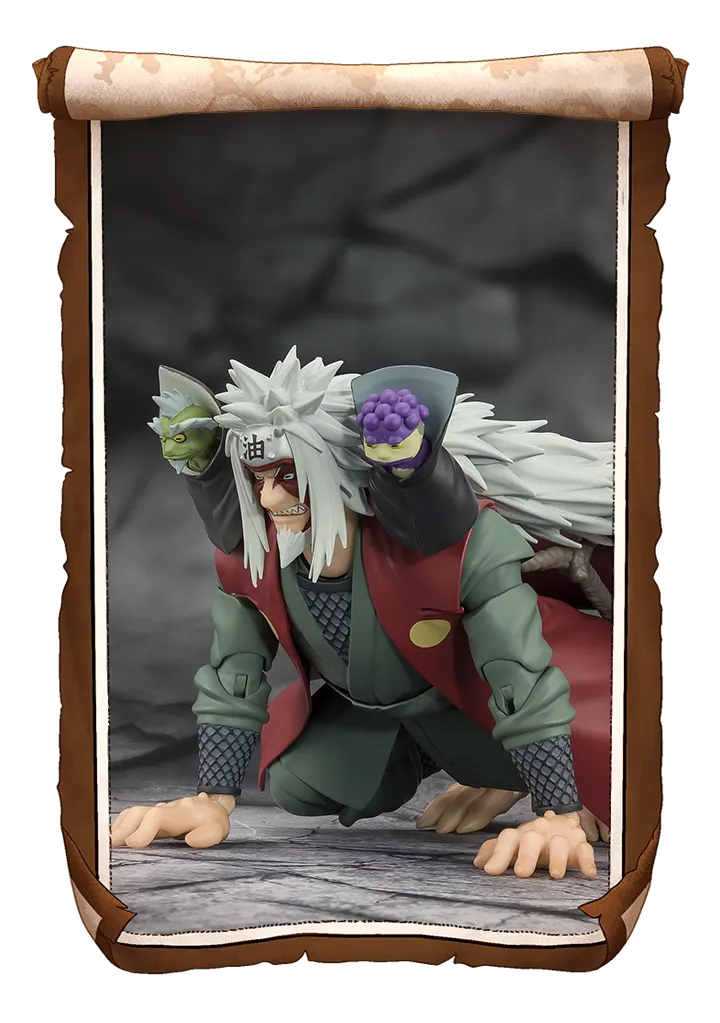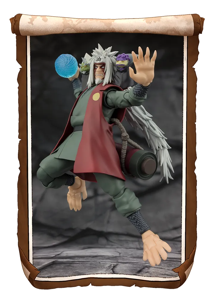 Jiraiya from the Naruto series comes to S.H.Figuarts with his Sage Mode! This gorgeous set allows you to play and display normal or Sage Mode versions of Jiraiya! He stands approximately 6 3/4-inches tall and is fully articulated. In addition to an optional hand for Rasengan, hand parts for Sage mode are included as replacement parts. By combining the figure with Fukasaku and Shima and feet parts, you can fully enjoy Jiraiya in his Sage Mode. Also, by using the opening smile parts, opening hands, and bonus parts for Naruto Uzumaki The Jinchuuriki Entrusted with Hope S.H.Figuarts Action Figure (sold separately), you can recreate iconic scenes with Naruto!