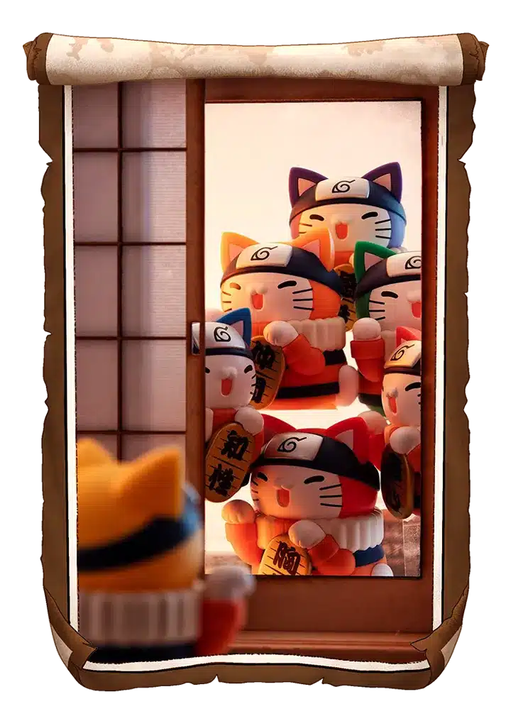 The popular Maneki-neko Fortune series welcomes Naruto Uzumaki in a vibrant form, using his Multi Shadow Clone Jutsu to appear in a rainbow of colors! These adorable lucky cat figures are designed to bring a smile to your face while adding a touch of good fortune to your collection. Each figure includes a fortune-telling message, letting you check your luck when you open it. With a fresh and fun twist on the Maneki-neko Fortune series, these kitty Naruto figures might just bring you a little extra luck! Each cat stands about 2 ¾-inches tall. Believe it!