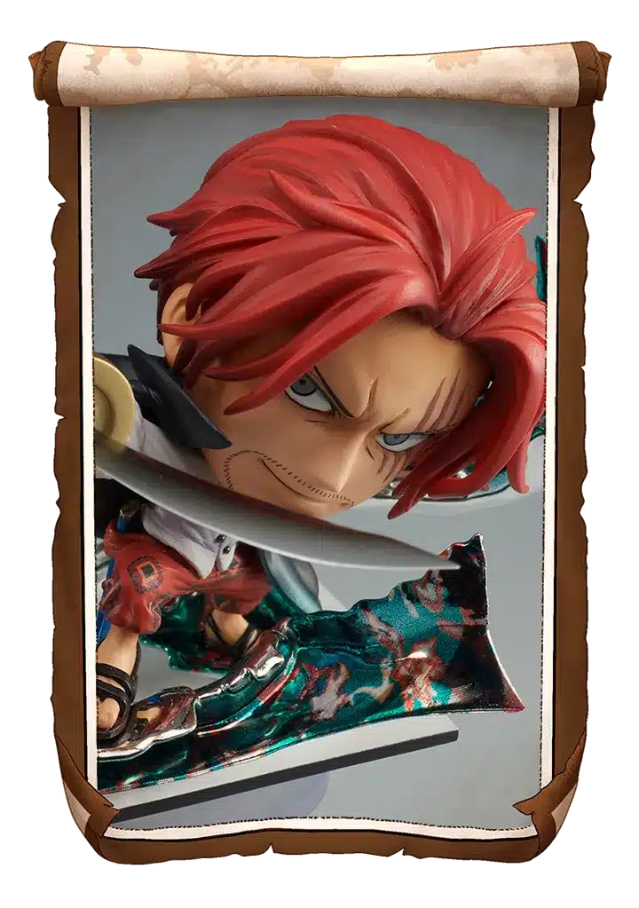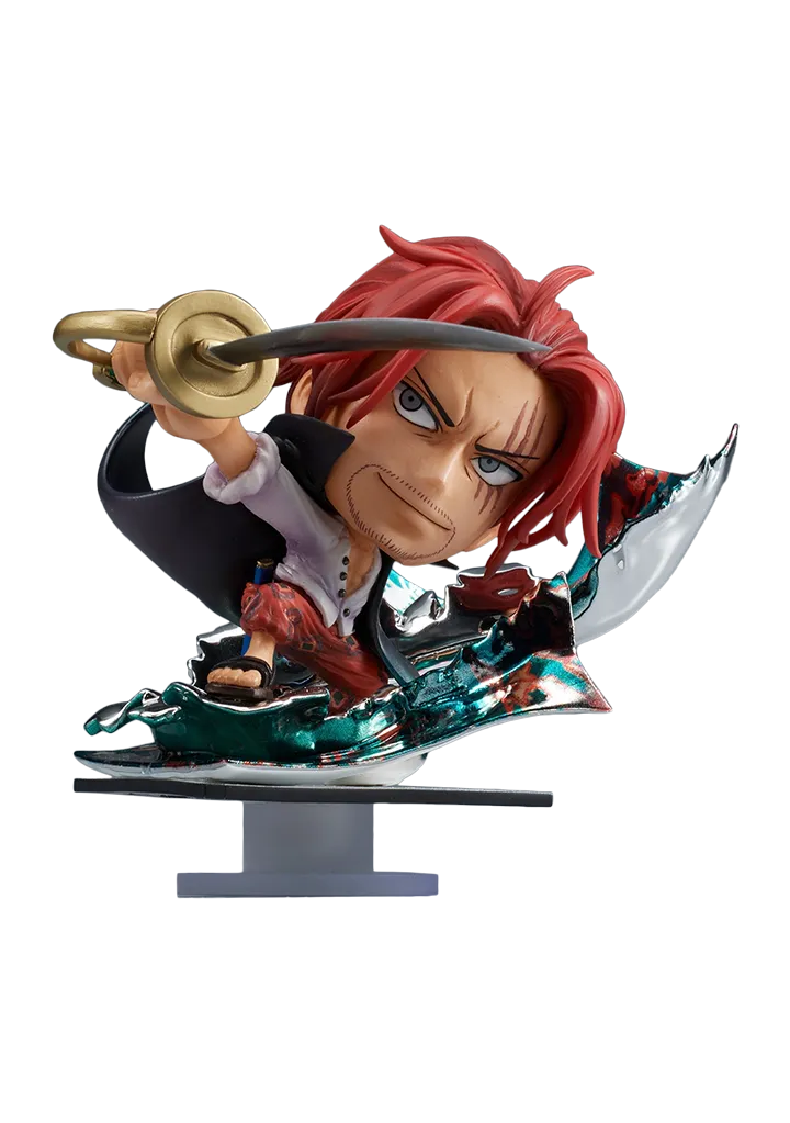 This highly detailed 4-inch tall One Piece figure has such a unique stylization you will not find anywhere else! The statue design is based on the illustration on the long running popular sticker series, Niformation in Japan. It looks as if your favorite anime character is popping up from the original sticker illustration. Featuring dynamic sculpting, clear parts, and detailed paint this is not to be missed! The One Piece Shanks Niformation Tsukuru Statue stands approximately 4-inches tall and comes with a stand.