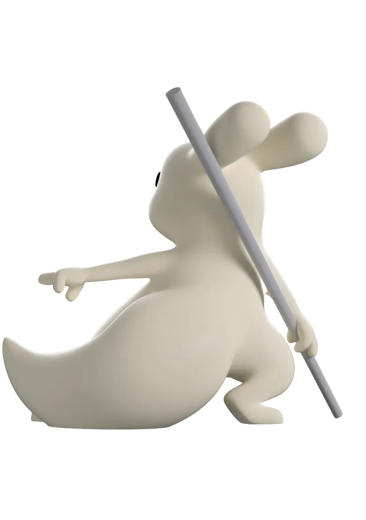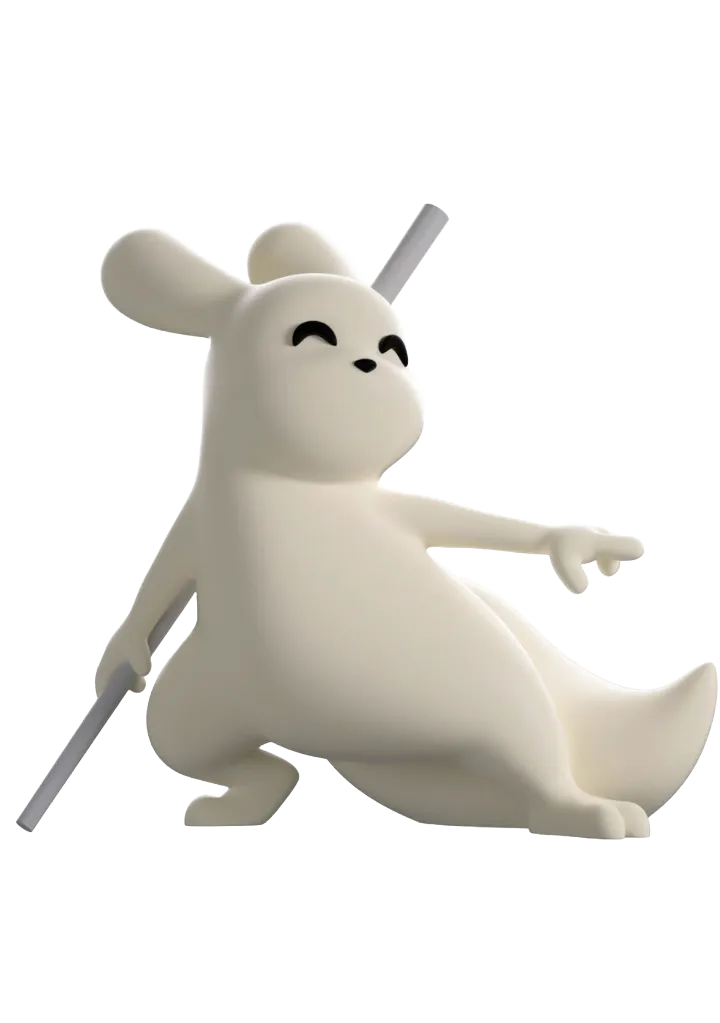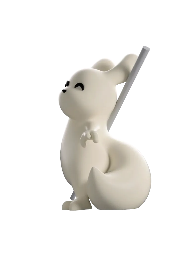 This Slugcat has beaten out the horrifying torrential rains to make Youtooz their new hibernation room! At 3.9 inches tall and is wielding a long pole that’s held behind their back as they stand at the ready to fend off any lurking foe, long thick ears stick out from the narrow head of their pale white body as they’re posed with a leg outstretched and a thick tail flicking out to the side. The exterior of their packaging sees them standing atop a dark ledge as thick vines wrap through the dilapidated metal structures in the distance, these then weave their way into the interior to surround them. The protective sleeve casts the ruined world in a green haze as their figure can be seen through the large clear window at the packaging’s front.